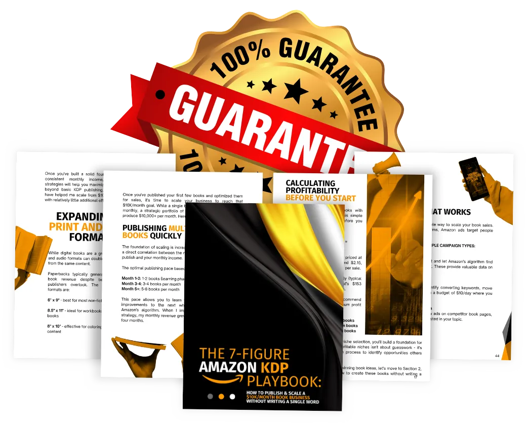 Just say "maybe" and try The 7-Figure Amazon KDP Playbook for 30 days, and if you aren't super excited with the results you're seeing, we'll give you the money back, no questions asked.